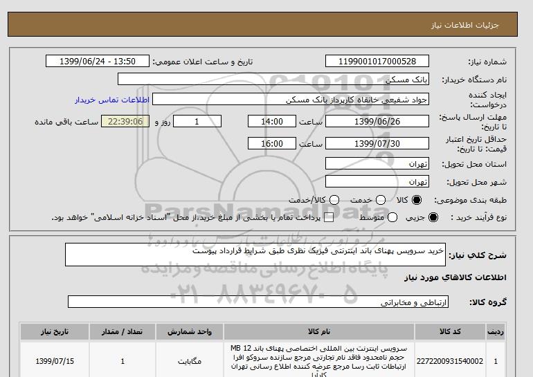 شرح کلی نیاز: خرید سرویس پهنای باند اینترنتی فیزیک نظری طبق شرایط قرارداد پیوست