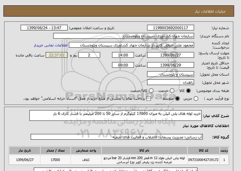 نام دستگاه خریدار:سازمان جهاد کشاورزی سیستان وبلوچستان