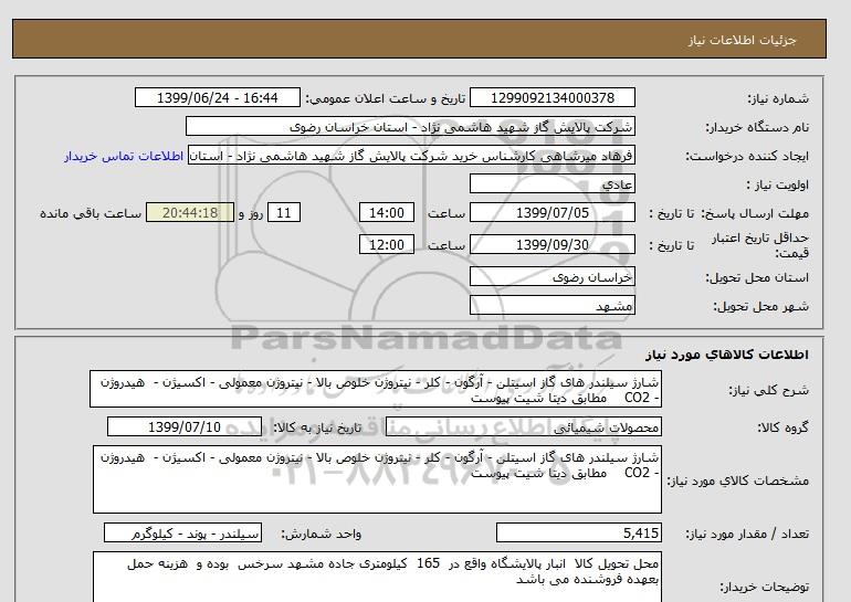 نام دستگاه خریدار:شرکت پالایش گاز شهید هاشمی نژاد - استان خراسان رضوی