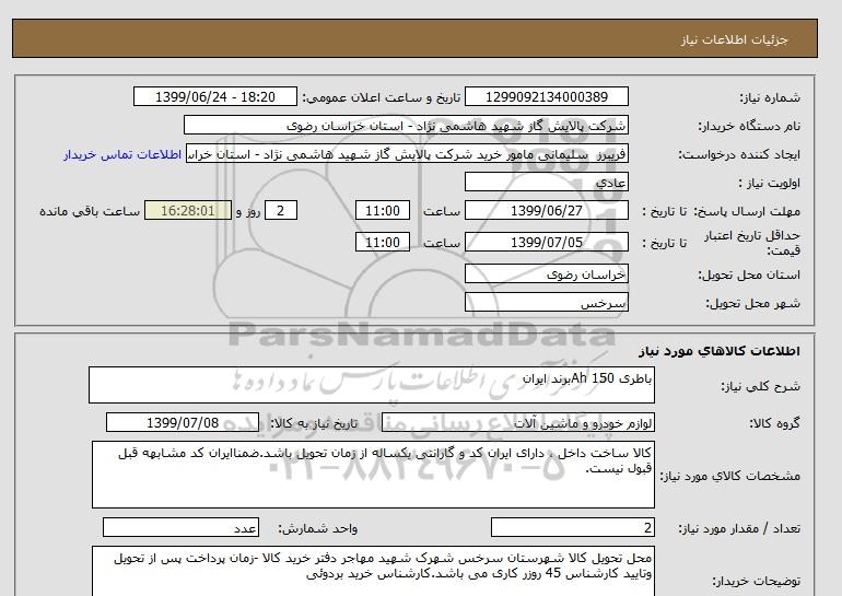 استعلام باطری 150 Ahبرند ایران, استعلام باطری 150 Ahبرند ایران