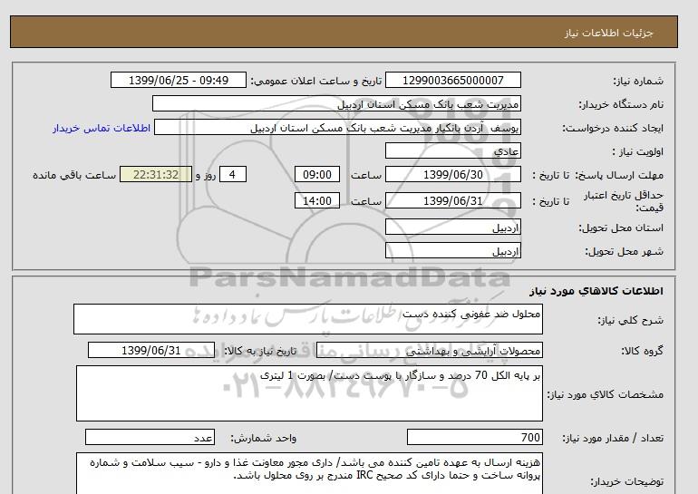 نام دستگاه خریدار:مدیریت شعب بانک مسکن استان اردبیل
