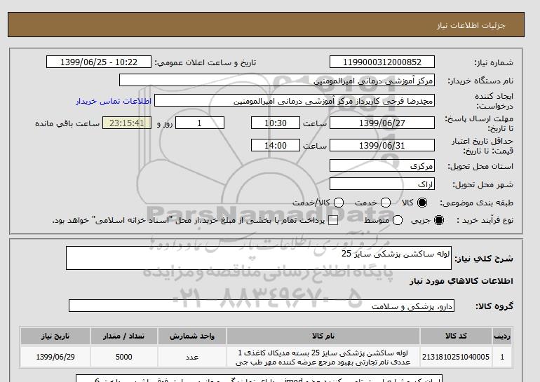 نام دستگاه خریدار:مرکز آموزشی درمانی امیرالمومنین