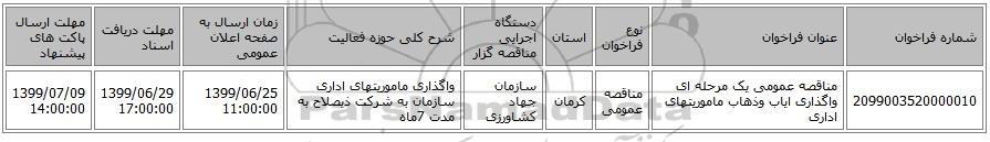 مناقصه، مناقصه عمومی یک مرحله ای واگذاری ایاب وذهاب ماموریتهای اداری, مناقصه عمومی یک مرحله ای واگذاری ایاب وذهاب ماموریتهای اداری