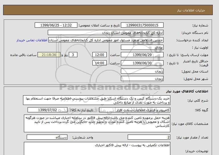 نام دستگاه خریدار:اداره کل کتابخانه های عمومی استان زنجان