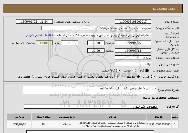 نام دستگاه خریدار:مدیریت شعب بانک مسکن استان مرکزی