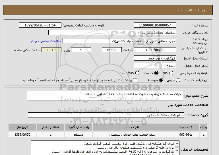 شرح کلی نیاز: اجرای سامانه خورشیدی جهت ساختمان ستاد جهادکشاورزی استان