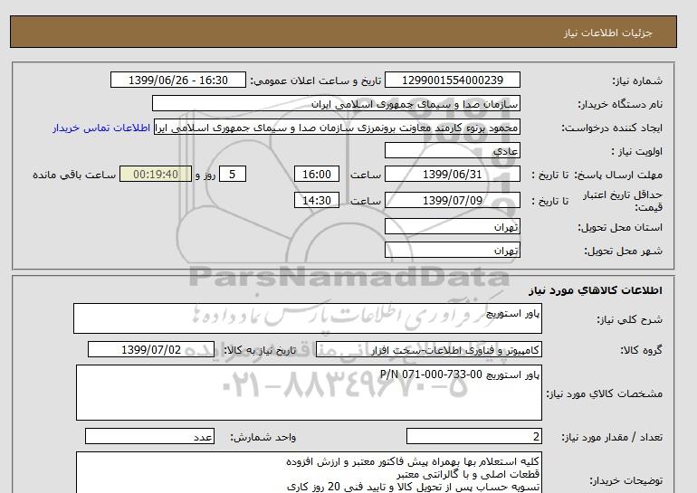 نام دستگاه خریدار:سازمان صدا و سیمای جمهوری اسلامی ایران