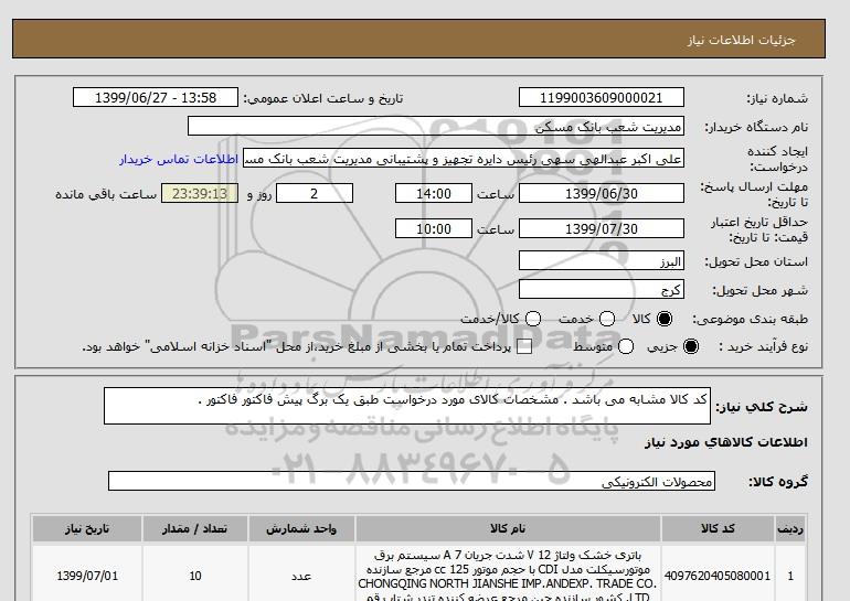 استعلام کد کالا مشابه می باشد . مشخصات کالای مورد درخواست طبق یک برگ پیش فاکتور فاکتور ., استعلام کد کالا مشابه می باشد . مشخصات کالای مورد درخواست طبق یک برگ پیش فاکتور فاکتور .