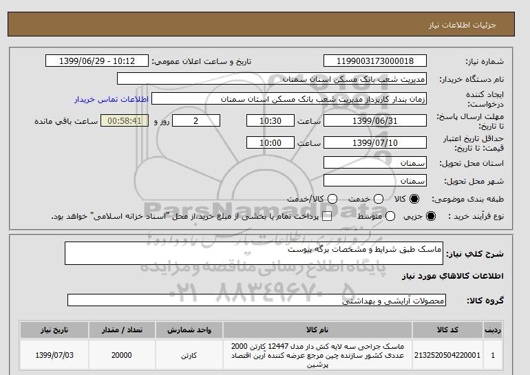 نام دستگاه خریدار:مدیریت شعب بانک مسکن استان سمنان