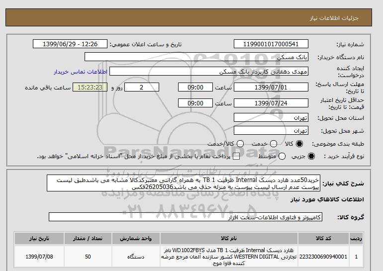 استعلام خرید50عدد هارد دیسک Internal ظرفیت 1 TB به همراه گارانتی معتبرکدکالا مشابه می باشدطبق لیست پیوست عدم ارسال لیست پیوست به منزله حذف می باشد26205036فکس , استعلام خرید50عدد هارد دیسک Internal ظرفیت 1 TB به همراه گارانتی معتبرکدکالا مشابه می باشدطبق لیست پیوست عدم ارسال لیست پیوست به منزله حذف می باشد26205036فکس