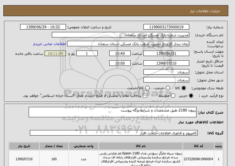 نام دستگاه خریدار:مدیریت شعب بانک مسکن استان سمنان