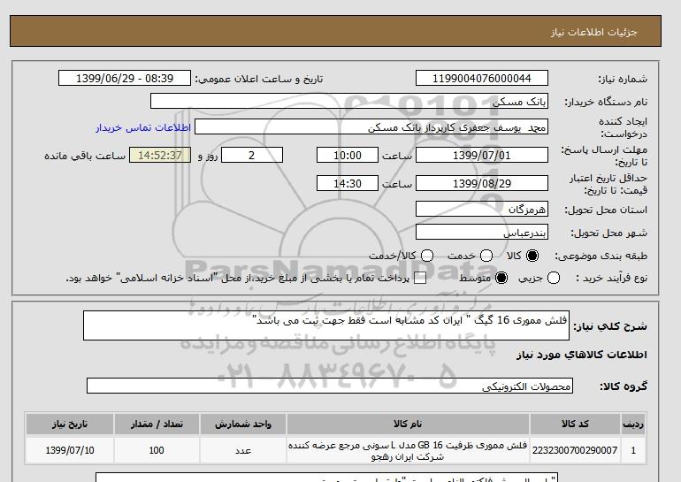 شرح کلی نیاز: فلش مموری 16 گیگ " ایران کد مشابه است فقط جهت ثبت می باشد"