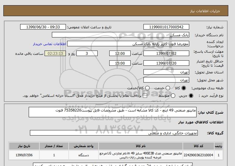 شرح کلی نیاز: مانیتور صنعتی 49 اینچ - کد کالا مشابه است - طبق مشخصات فایل پیوست75358220 فتوت