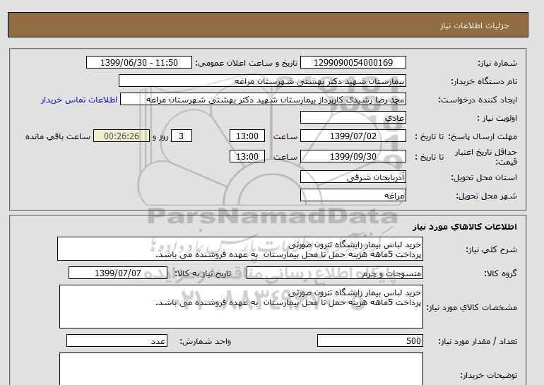 نام دستگاه خریدار:بیمارستان شهید دکتر بهشتی شهرستان مراغه
