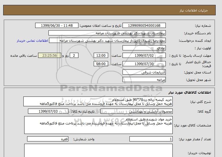 نام دستگاه خریدار:بیمارستان شهید دکتر بهشتی شهرستان مراغه