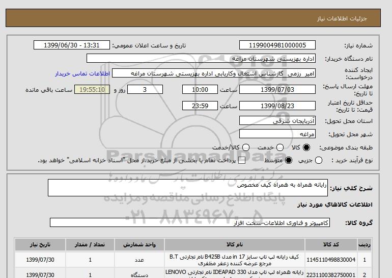شرح کلی نیاز: رایانه همراه به همراه کیف مخصوص