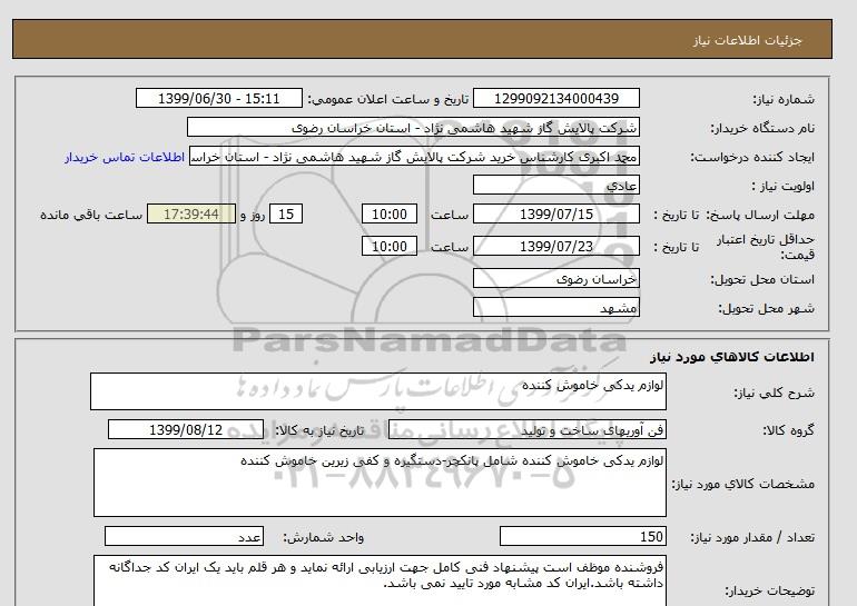 نام دستگاه خریدار:شرکت پالایش گاز شهید هاشمی نژاد - استان خراسان رضوی