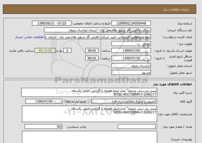 نام دستگاه خریدار:شرکت پالایش گاز شهید هاشمی نژاد - استان خراسان رضوی