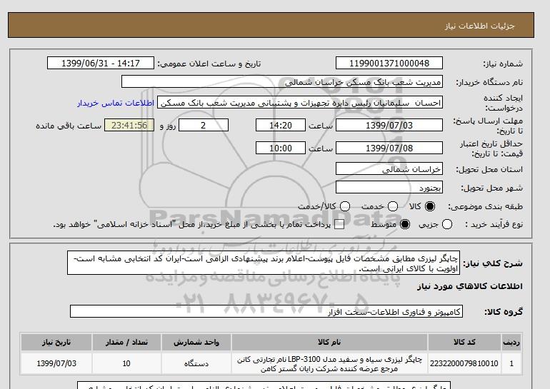 نام دستگاه خریدار:مدیریت شعب بانک مسکن خراسان شمالی