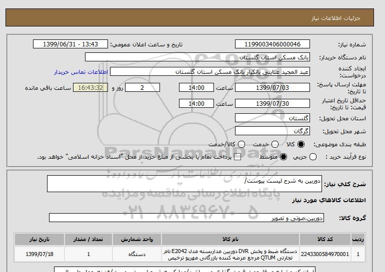 نام دستگاه خریدار:بانک مسکن استان گلستان