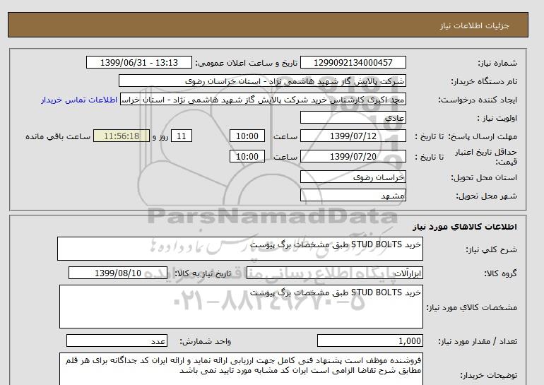 مشخصات کالای مورد نیاز: خرید STUD BOLTS طبق مشخصات برگ پیوست