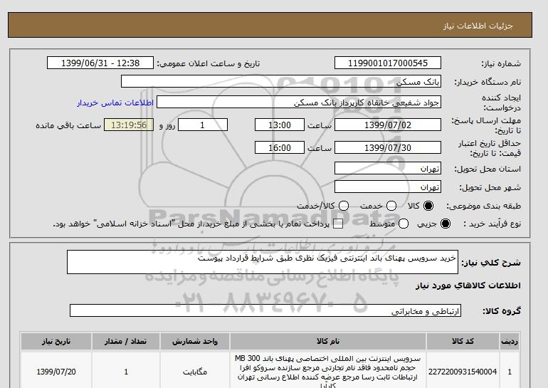 شرح کلی نیاز: خرید سرویس پهنای باند اینترنتی فیزیک نظری طبق شرایط قرارداد پیوست