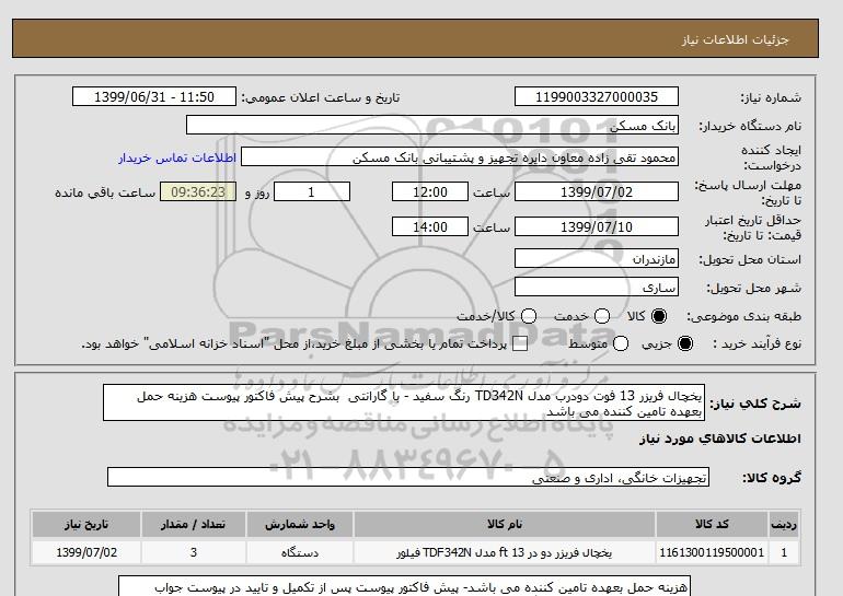 شرح کلی نیاز: یخچال فریزر 13 فوت دودرب مدل TD342N رنگ سفید - با گارانتی بشرح پیش فاکتور پیوست هزینه حمل بعهده تامین کننده می باشد
