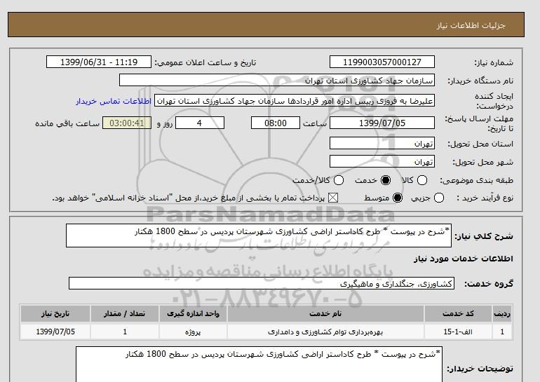 شرح کلی نیاز: *شرح در پیوست * طرح کاداستر اراضی کشاورزی شهرستان پردیس در سطح 1800 هکتار