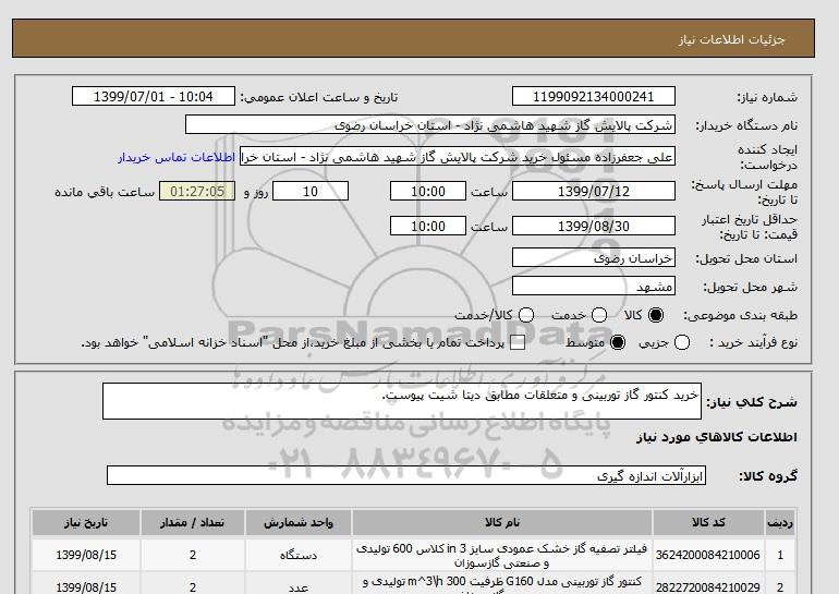 نام دستگاه خریدار:شرکت پالایش گاز شهید هاشمی نژاد - استان خراسان رضوی