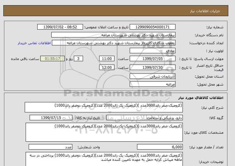 نام دستگاه خریدار:بیمارستان شهید دکتر بهشتی شهرستان مراغه