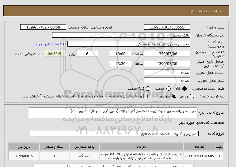 توضیحات خریدارخرید تجهیزات سرور جهت زیرساخت میز کار مجازی (طبق قرارداد و الزامات پیوست)