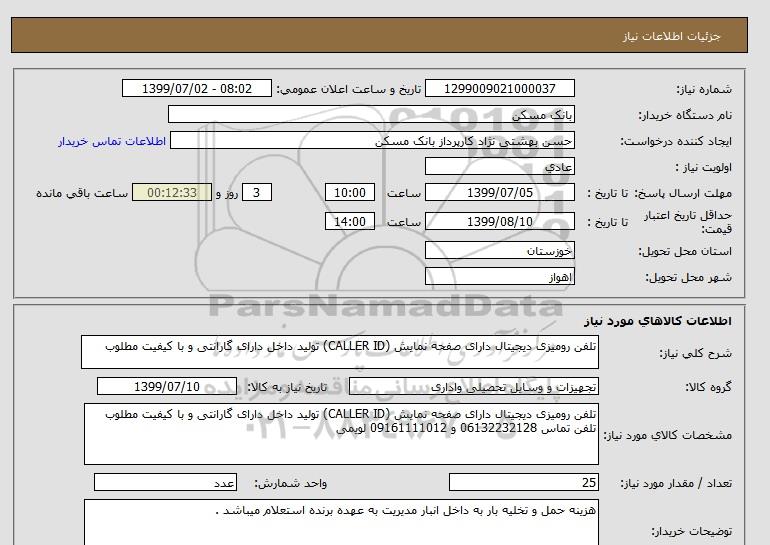 مشخصات کالای مورد نیاز: تلفن رومیزی دیجیتال دارای صفحه نمایش (CALLER ID) تولید داخل دارای گارانتی و با کیفیت مطلوب تلفن تماس 06132232128 و 09161111012 لویمی