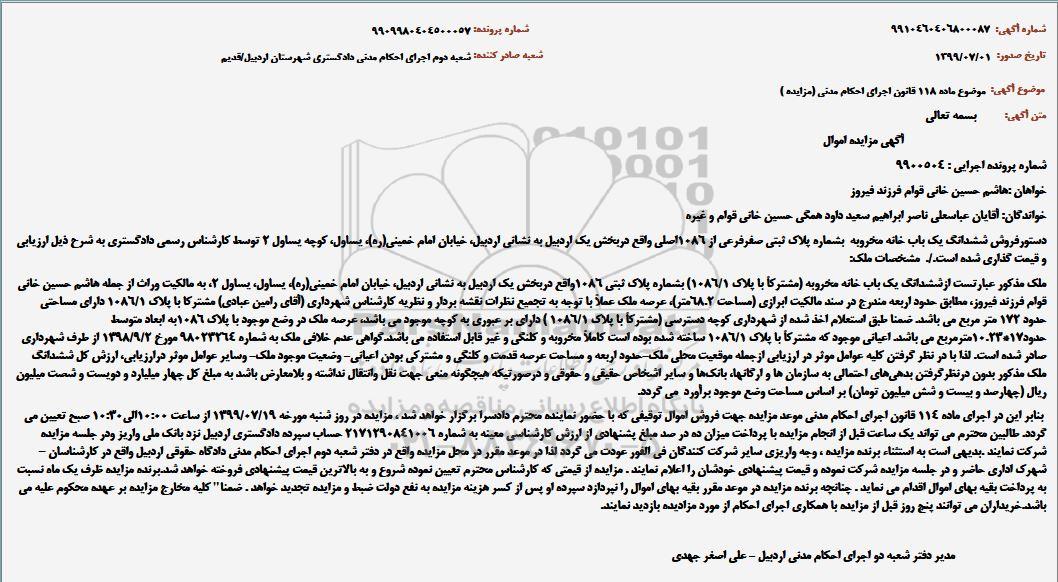 مزایده ششدانگ یک باب خانه مخروبه , مزایده ششدانگ یک باب خانه مخروبه