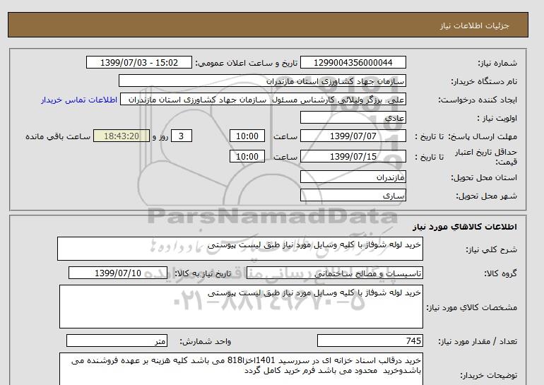 نام دستگاه خریدار:سازمان جهاد کشاورزی استان مازندران