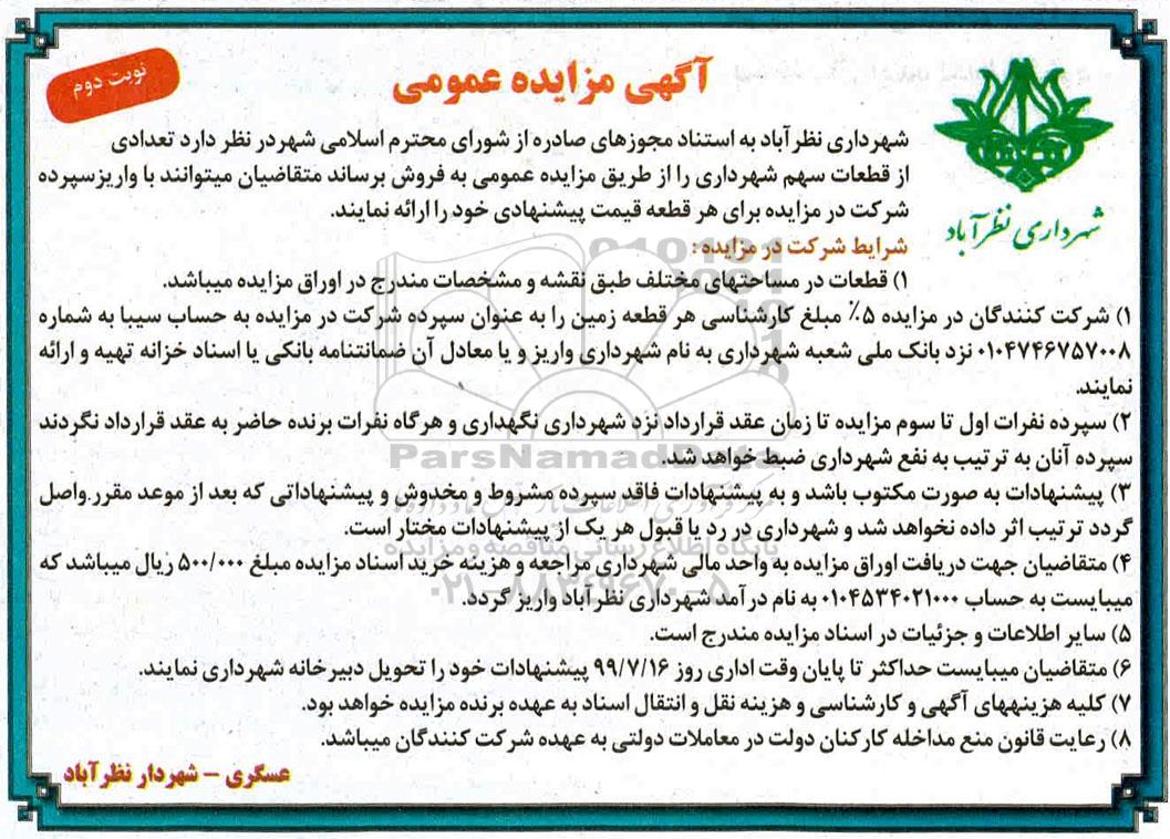 مزایده فروش تعدادی از قطعات سهم شهرداری نوبت دوم