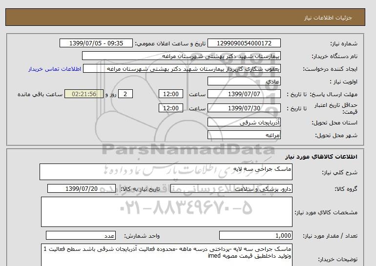 نام دستگاه خریدار:بیمارستان شهید دکتر بهشتی شهرستان مراغه