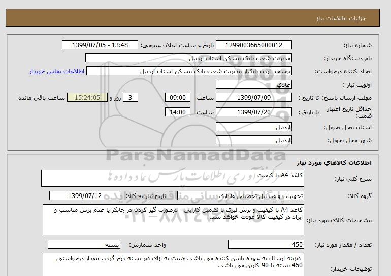 نام دستگاه خریدار:مدیریت شعب بانک مسکن استان اردبیل