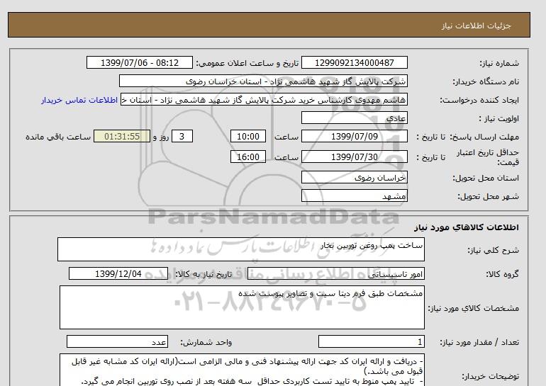نام دستگاه خریدار:شرکت پالایش گاز شهید هاشمی نژاد - استان خراسان رضوی