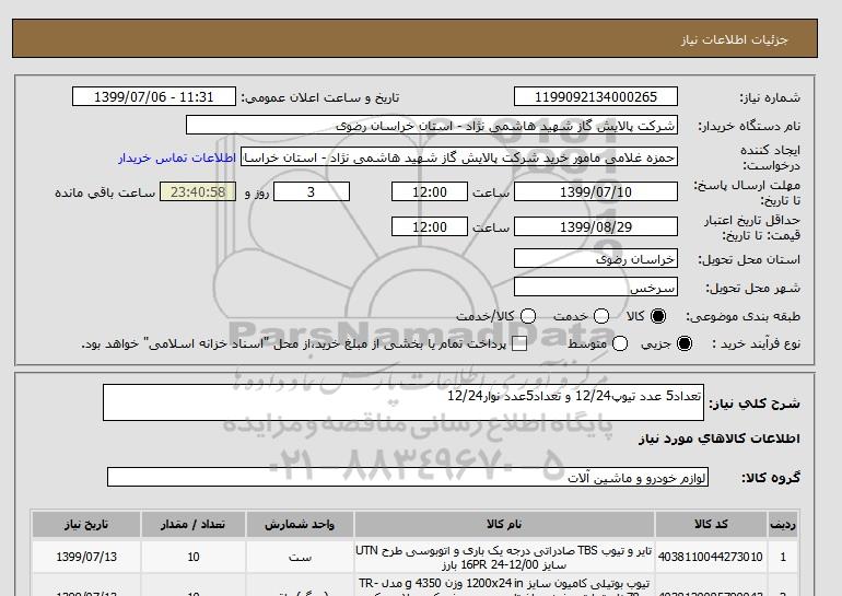 شرح کلی نیاز: تعداد5 عدد تیوپ12/24 و تعداد5عدد نوار12/24