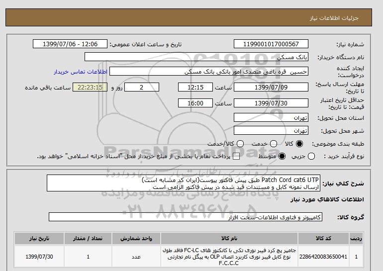 شرح کلی نیاز: Patch Cord cat6 UTP طبق پیش فاکتور پیوست(ایران کد مشابه است) ارسال نمونه کابل و مستندات قید شده در پیش فاکتور الزامی است
