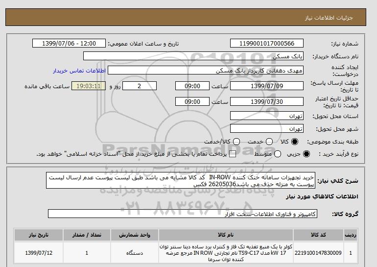 شرح کلی نیاز: خرید تجهیزات سامانه خنک کننده IN-ROW کد کالا مشابه می باشد طبق لیست پیوست عدم ارسال لیست پیوست به منزله حذف می باشد26205036 فکس