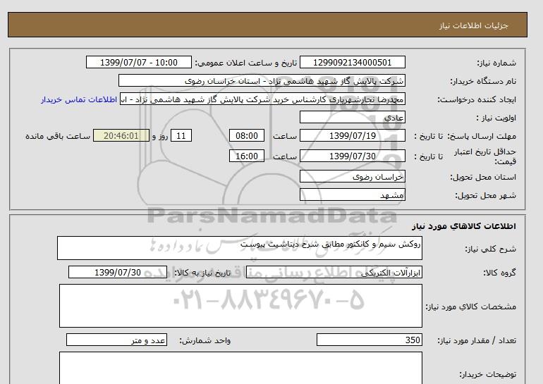 نام دستگاه خریدار:شرکت پالایش گاز شهید هاشمی نژاد - استان خراسان رضوی