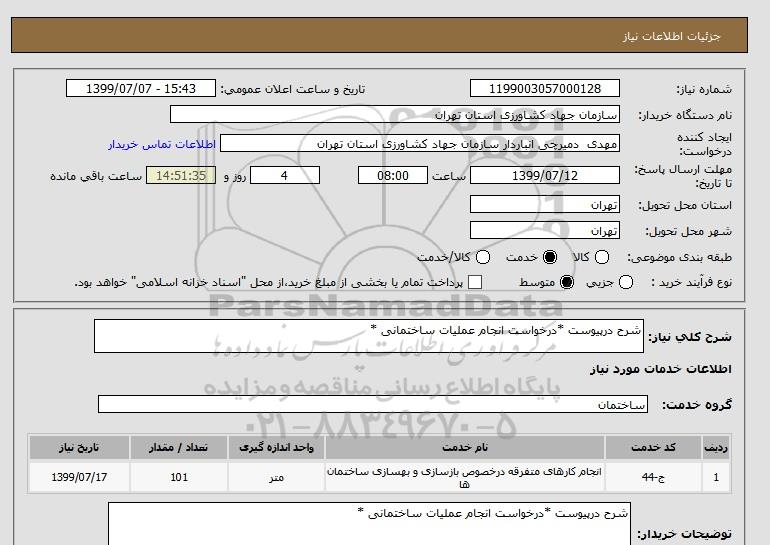 استعلام شرح درپیوست *درخواست انجام عملیات ساختمانی *, استعلام شرح درپیوست *درخواست انجام عملیات ساختمانی *