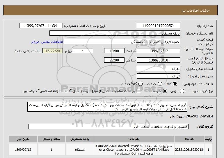 شرح کلی نیاز: قرارداد خرید تجهیزات شبکه ... (طبق مشخصات پیوست شده ) ، تکمیل و ارسال پیش نویس قرارداد پیوست شده تا قبل از اتمام مهلت ارسال پاسخ الزامیست .