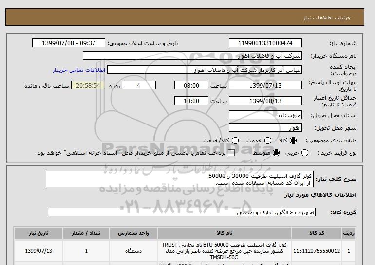 شرح کلی نیاز: کولر گازی اسپلیت ظرفیت 30000 و 50000