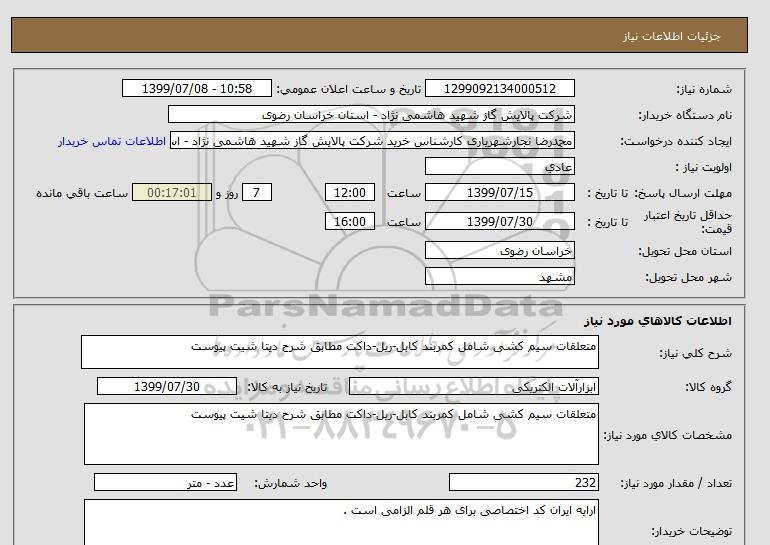 نام دستگاه خریدار:شرکت پالایش گاز شهید هاشمی نژاد - استان خراسان رضوی