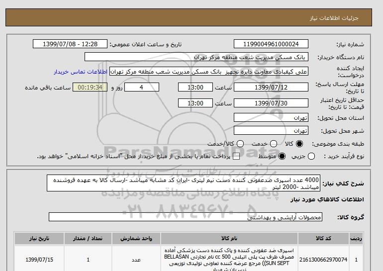 استعلام 4000 عدد اسپری ضدعفونی کننده دست نیم لیتری -ایران کد مشابه میباشد -ارسال کالا به عهده فروشنده میباشد -2000 لیتر, استعلام 4000 عدد اسپری ضدعفونی کننده دست نیم لیتری -ایران کد مشابه میباشد -ارسال کالا به عهده فروشنده میباشد -2000 لیتر