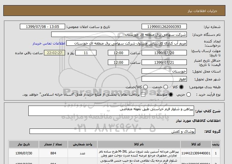 شرح کلی نیاز: پیراهن و شلوار فرم حراستی طبق نمونه متقاضی