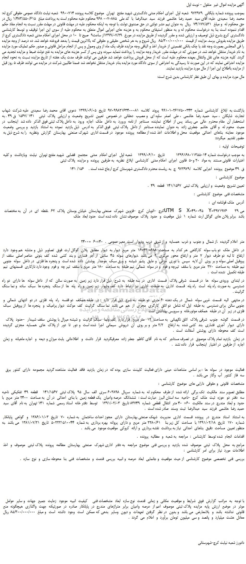 141 /156    ق  49 موضوع  پرونده  اجرایی کلاسه  /972979  ج  به ریاست محترم دادگستری شهرستان کرج ارجاع شده است .