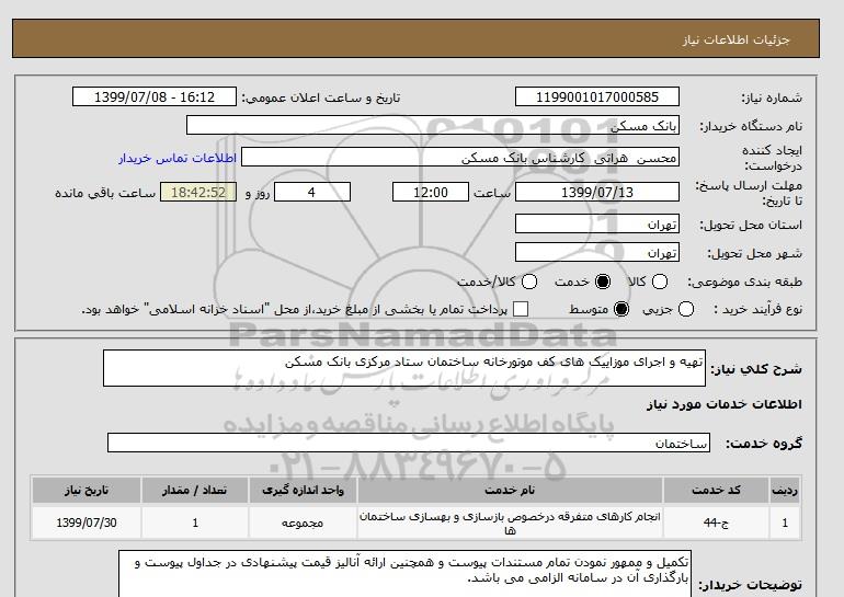شرح کلی نیاز: تهیه و اجرای موزاییک های کف موتورخانه ساختمان ستاد مرکزی بانک مسکن